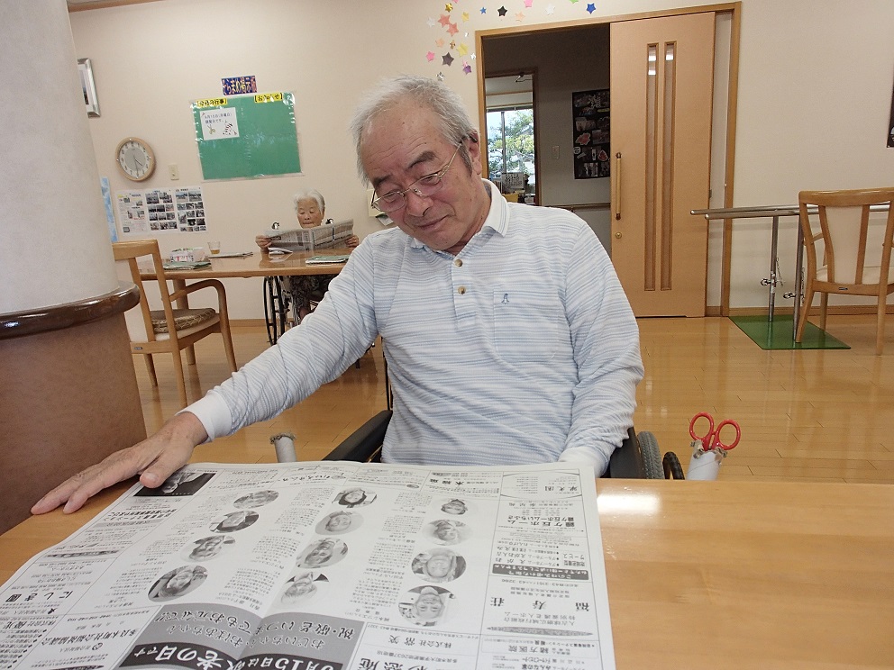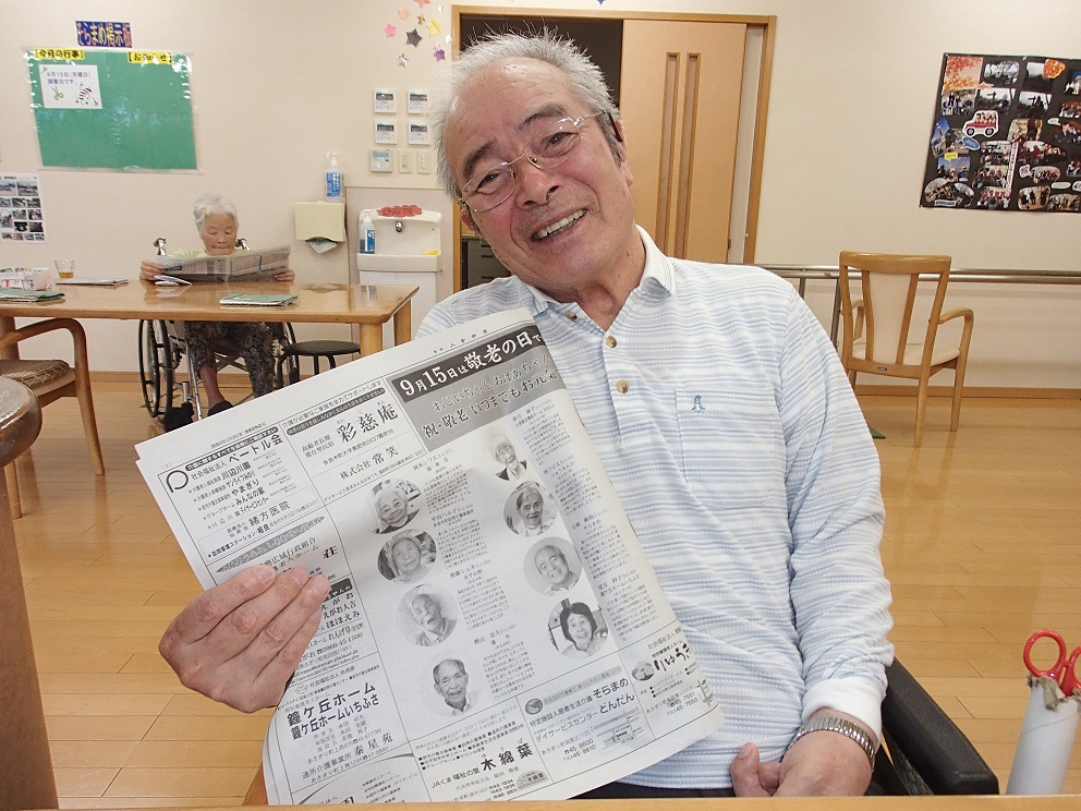 敬老の日の人吉新聞に、ご自分が掲載されているのを見つけられ、とっても嬉しそうです。
