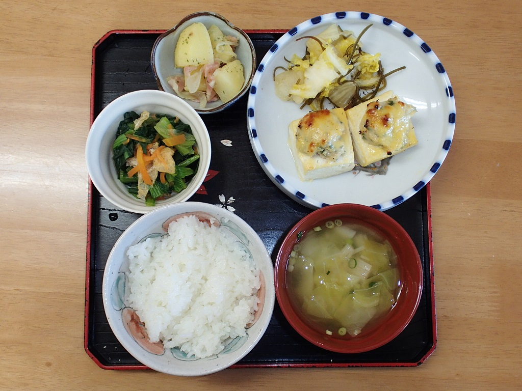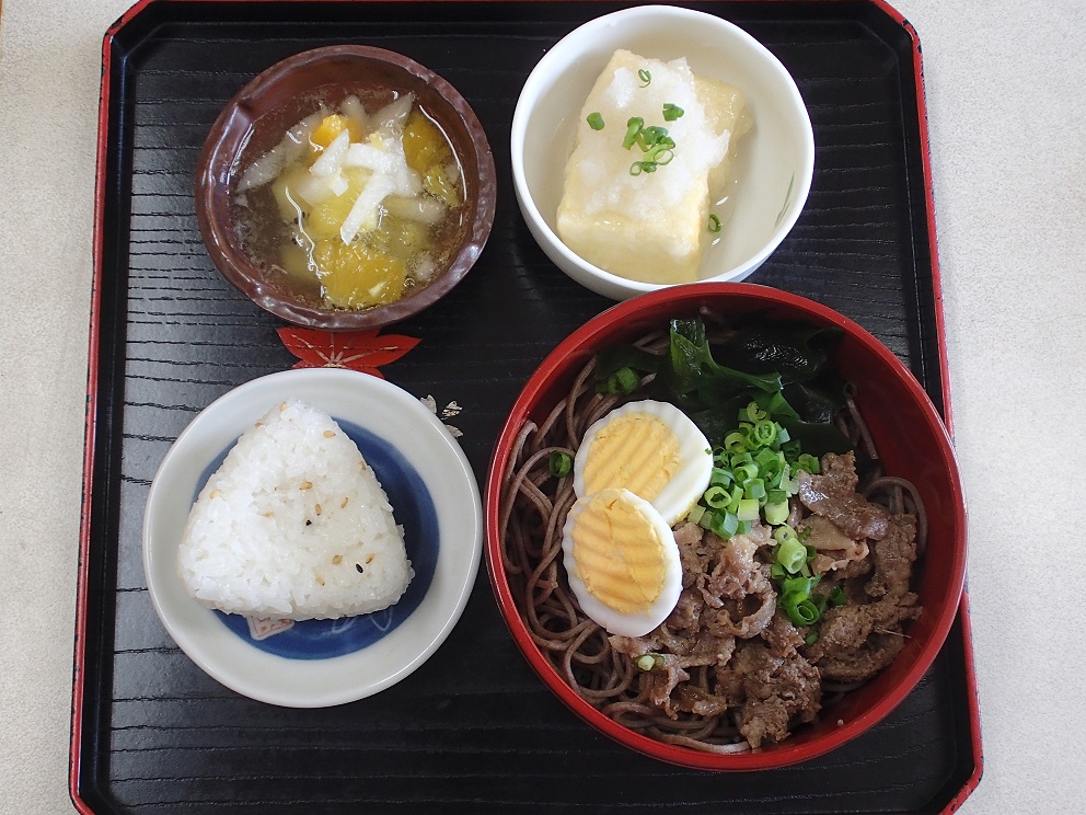 左側は肉そば、右側のメインは豆腐の肉味噌焼きです。